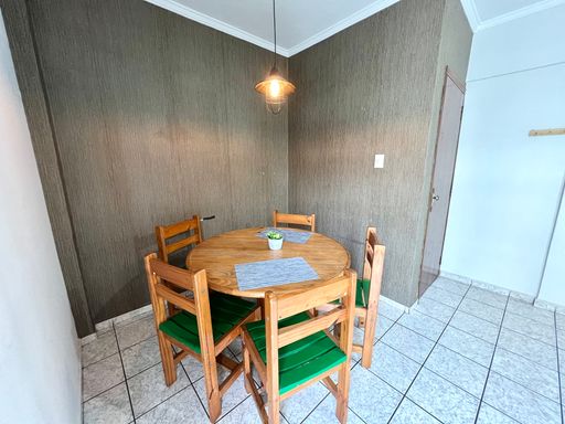 O apartamento conta com um dormitório, um banheiro e sala para dois ambientes, proporcionando conforto e versatilidade. A varanda está presente tanto na sala quanto no dormitório, trazendo mais ventilação e iluminação natural aos espaços.