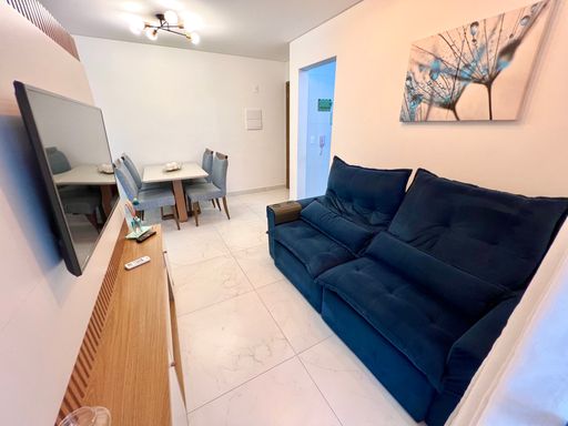A varanda é ampla e funcional, proporcionando um ambiente agradável e conectado ao living. A apenas 500 metros da praia, o apartamento oferece uma localização privilegiada, ideal para quem busca qualidade de vida e fácil acesso à orla.