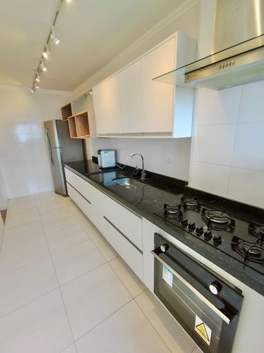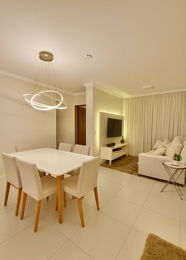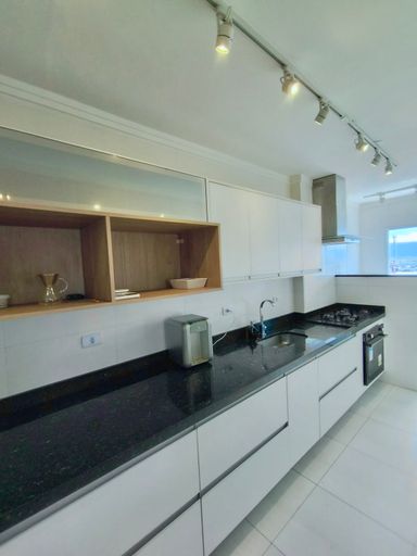 Imóvel (81,54 metros úteis) conta com 02 dormitórios sendo 01 suíte, sala integrada a cozinha do tipo americana, terraço na sala frente para a rua, área de serviço, banheiro e 02 vagas de garagem.