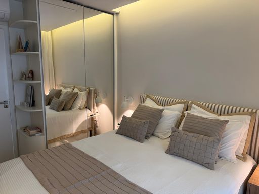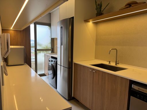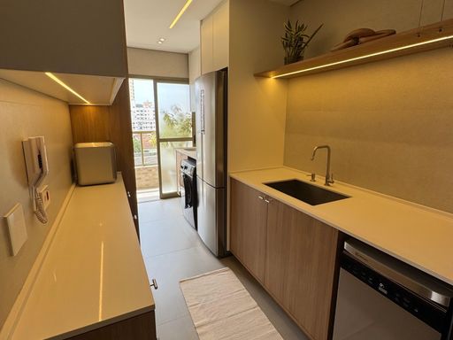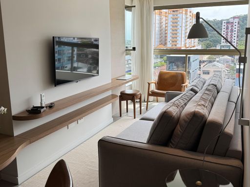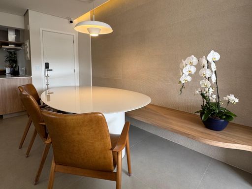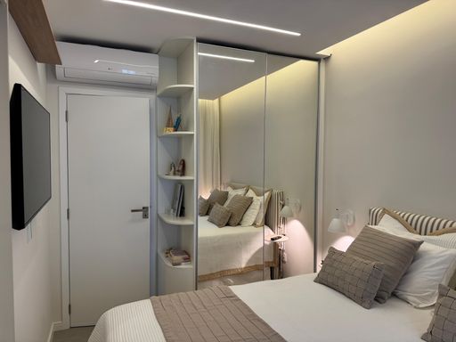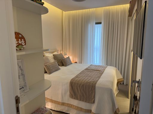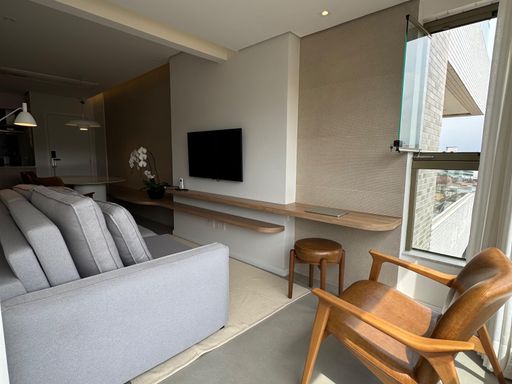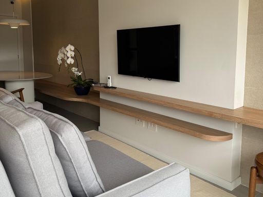 Com 2 dormitórios, sendo 1 suíte, além de um banheiro social e 1 vaga de garagem livre, o apartamento possui uma distribuição inteligente dos ambientes. A sala foi ampliada para a varanda, que recebeu envidraçamento e integração total ao living, criando um espaço amplo, iluminado e perfeito para receber. O imóvel também conta com climatização completa em todos os ambientes e integração com Alexa, garantindo praticidade e tecnologia no dia a dia.