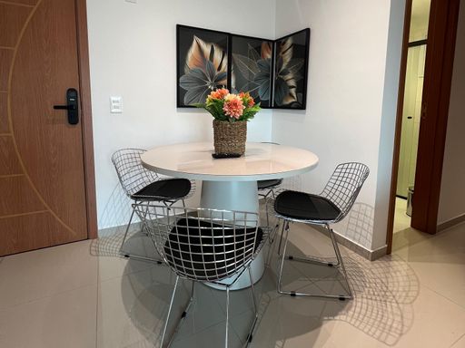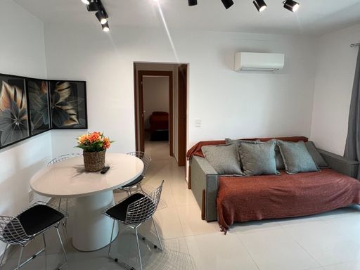 O apartamento está totalmente mobiliado, incluindo ar-condicionado em todos os ambientes, e dispõe de uma vaga livre de garagem. Aceita financiamento bancário, tornando a negociação mais acessível.
