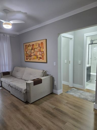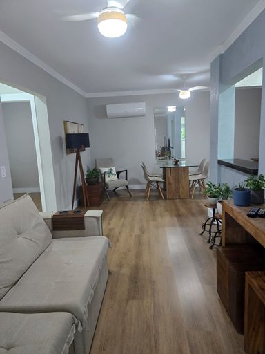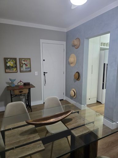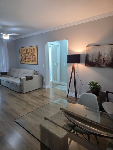 O apartamento conta com dois dormitórios, sendo uma suíte, além de dois banheiros, atendendo bem a rotina da família com mais conforto. Semi mobiliado, o imóvel já oferece mais praticidade para quem procura um apartamento pronto para uso. A sala grande proporciona um ambiente espaçoso e agradável, enquanto a varanda gourmet agrega um diferencial importante para momentos de lazer e convivência.