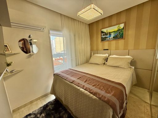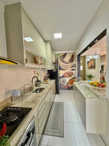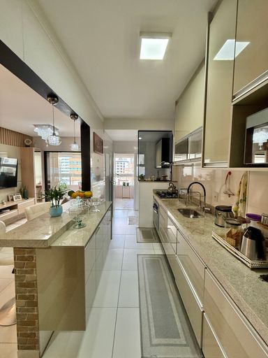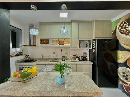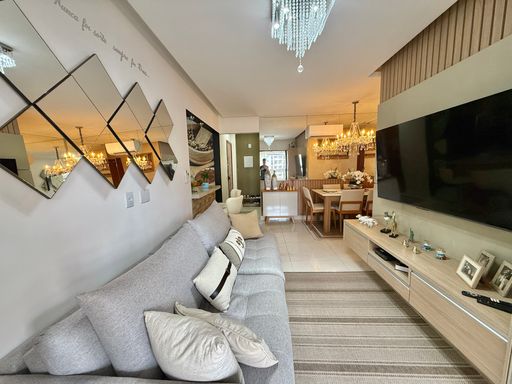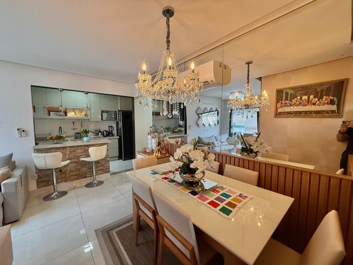 Imóvel (87,88 metros úteis) conta com 02 suítes, sala 02 ambientes, lavabo, cozinha americana integrada a sala, terraço gourmet envidraçado e mobiliado, 02 vagas de garagem.