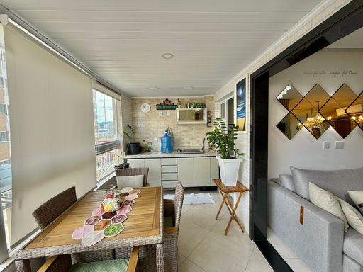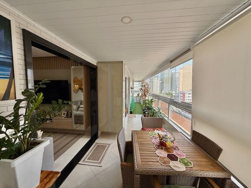 Destacando que o imóvel encontra-se todo mobiliado, com muito bom gosto, iluminação de LED, rebaixo do teto, envidraçamento total do terraço.