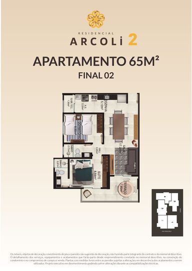 Imóvel (65,62 metros úteis) contando com 02 dormitórios sendo 01 suíte, sala dois ambientes, sacada gourmet frente para a rua, cozinha, área de serviço, banheiro social e 01 vaga de garagem.