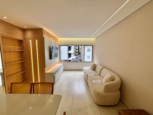 Apartamento todo reformado e mobiliado no Canto do Forte, apenas 1 quadra do mar, contando com 2 dormitórios e 2 banheiros.
