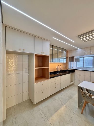 Dividido em 74,70 metros de área útil, contando com 2 dormitórios, linda sala dois ambientes, cozinha, área de serviço, 2 banheiros e 2 vagas de garagem.