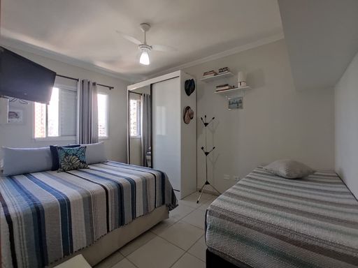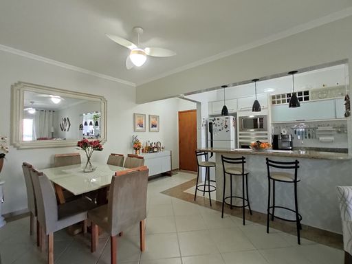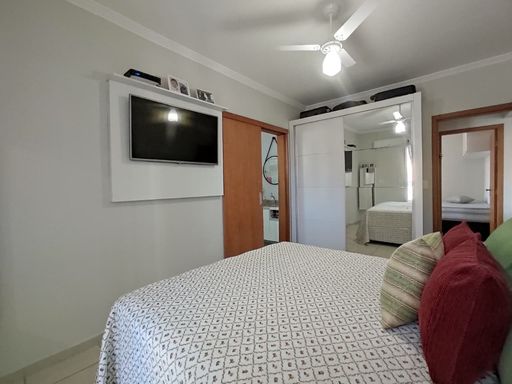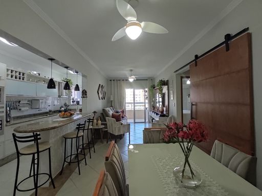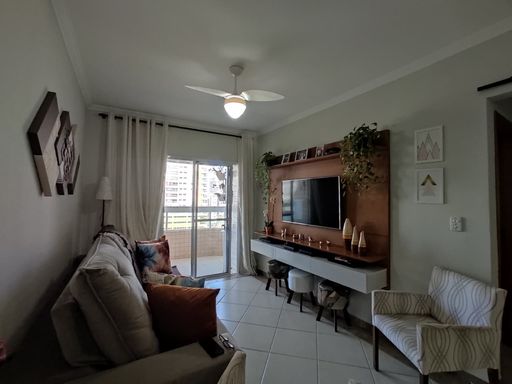 Imóvel mobiliado com muito bom gosto, no Canto do Forte, com sacada com churrasqueira a carvão, frente para a rua, sala dois ambientes, cozinha mobiliada, 02 dormitórios sendo 01 suíte, banheiro social e 01 vaga de garagem.