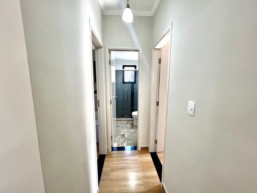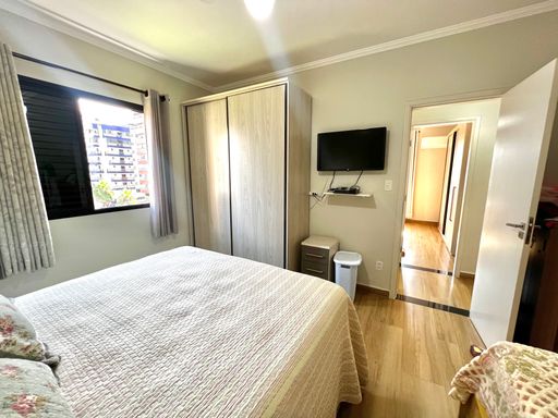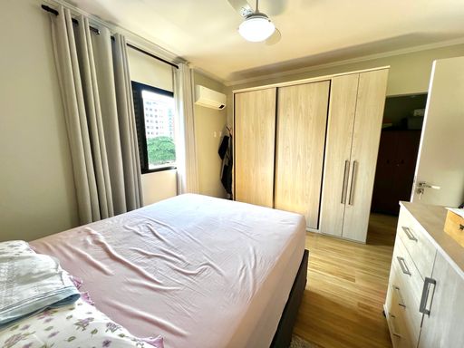 O apartamento conta com dois dormitórios, sendo uma suíte, além de um banheiro social, oferecendo uma planta bem distribuída para acomodar a família com conforto. O imóvel está semi mobiliado e permanecerá com os móveis planejados, garantindo melhor aproveitamento dos espaços e mais praticidade para quem deseja comprar um imóvel já estruturado.