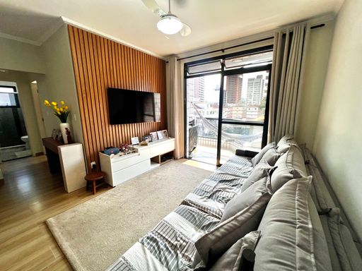Totalmente reformado, este apartamento se destaca pelo acabamento atualizado e pelo excelente estado de conservação. A sala possui sacada com churrasqueira a carvão, um diferencial muito valorizado para quem gosta de receber amigos e aproveitar momentos de lazer com mais privacidade e conforto.