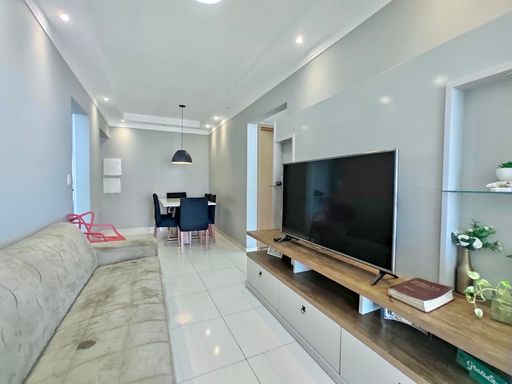 Imóvel (74,00 metros úteis) conta com 02 dormitórios sendo 01 suíte, sala 02 ambientes, cozinha mobiliada, área de serviço, terraço gourmet e 01 vaga de garagem.