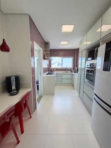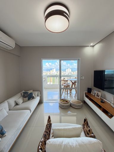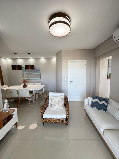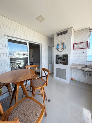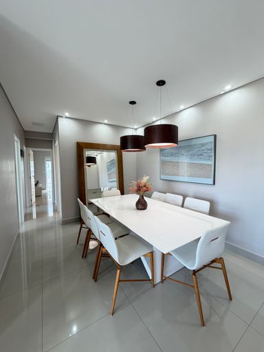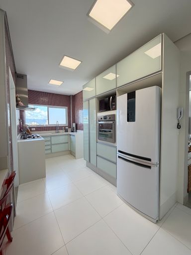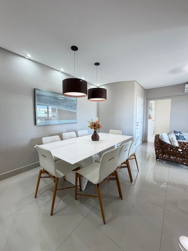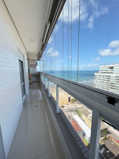 Distribuídos em 123,00 metros de área útil, andar alto, vista para o mar, 03 dormitórios sendo 02 suítes, sala dois ambientes, cozinha planejada, sacada gourmet toda envidraçada com vista linda para a praia, churrasqueira a gás, 02 vagas de garagem.