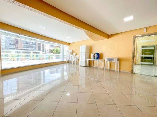 Residencial conta com piscina, solarium, salão de jogos, salão de festas, portaria, elevadores e monitoramento.