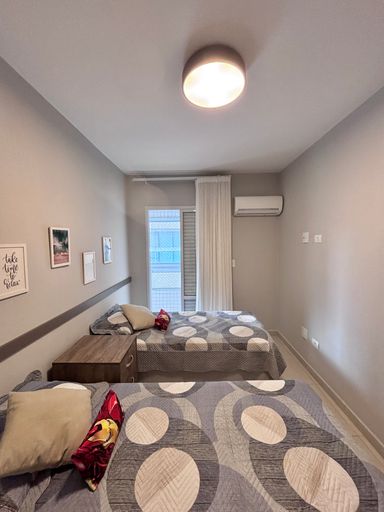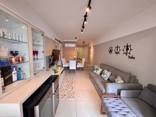 Apartamento alto padrão na quadra do mar no Canto do Forte, porteira fechada, entregue todo mobiliado e decorado, com vista mar e churrasqueira a carvão.